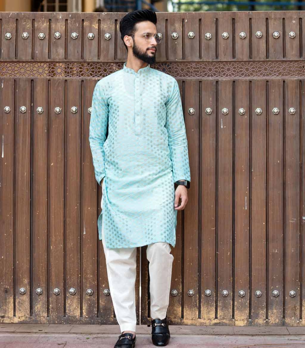 Redefine your ethnic wardrobe with this refreshing Sky Azure Kurta set. Combining a cool, serene color palette with meticulous embroidery, this outfit is designed for the modern man who values both comfort and traditional sophistication. It is an ideal choice for Friday prayers, semi-formal gatherings, or festive celebrations like Eid.